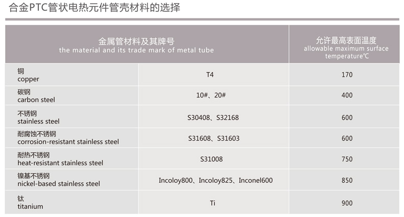 ◆ 由金屬管殼、引出棒(不發熱區)、氧化鎂粉、PTC合金電熱絲等組成。